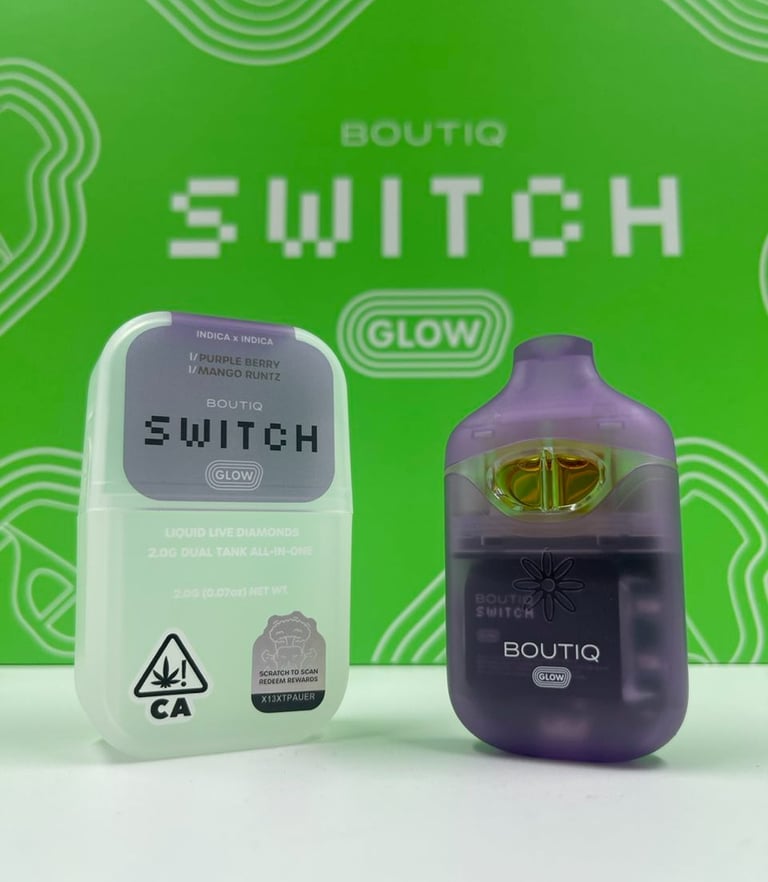 Boutiq is a premium disposable brand known for flavor-first devices across dispensary menus and curated online retailers, with the Switch series positioned as its dual-strain flagship for users who want in-device variety without swapping carts. Across U.S. listings, Boutiq appears with 2g liquid diamond/live resin formulations, strain-specific flavor curation, and rechargeable hardware options that appeal to regular vapers and enthusiasts alike.